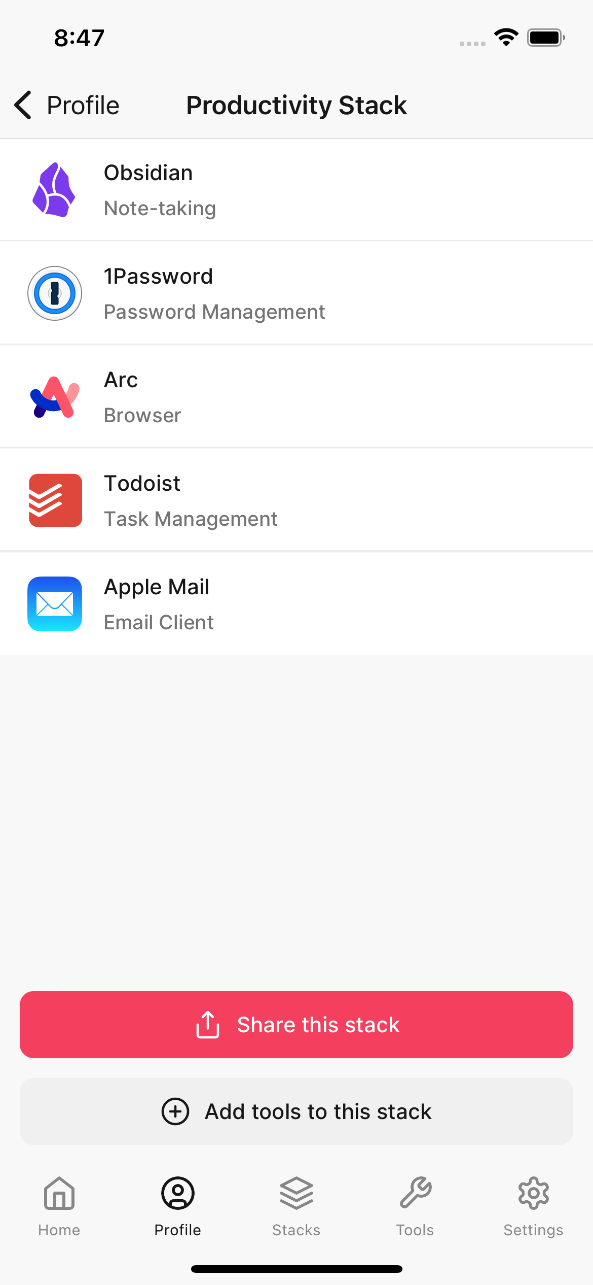 Right now, Share My Stack is available for iOS and macOS only. I’m considering to launch an Android version in the future. Feel free to voice your support on the roadmap.